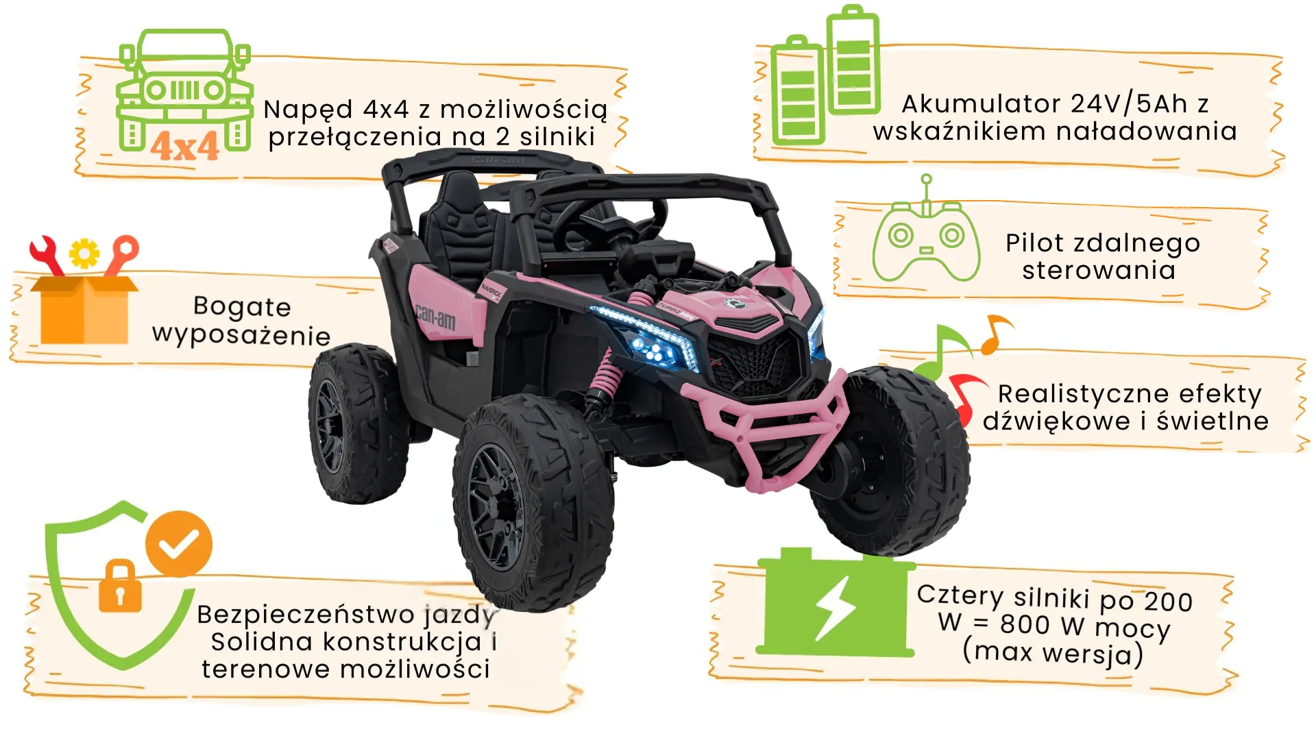 Buggy dla dziecka - ATV CAN-AM - Maverick - Różowy dla Dziewczynki