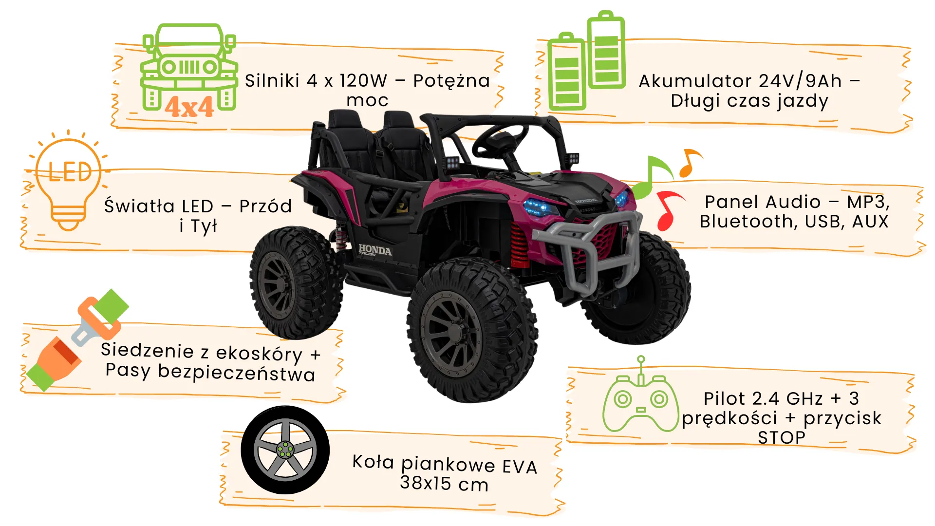 Buggy dla Dziewczynki - HONDA Talon 4x4 - Kolor Różowy