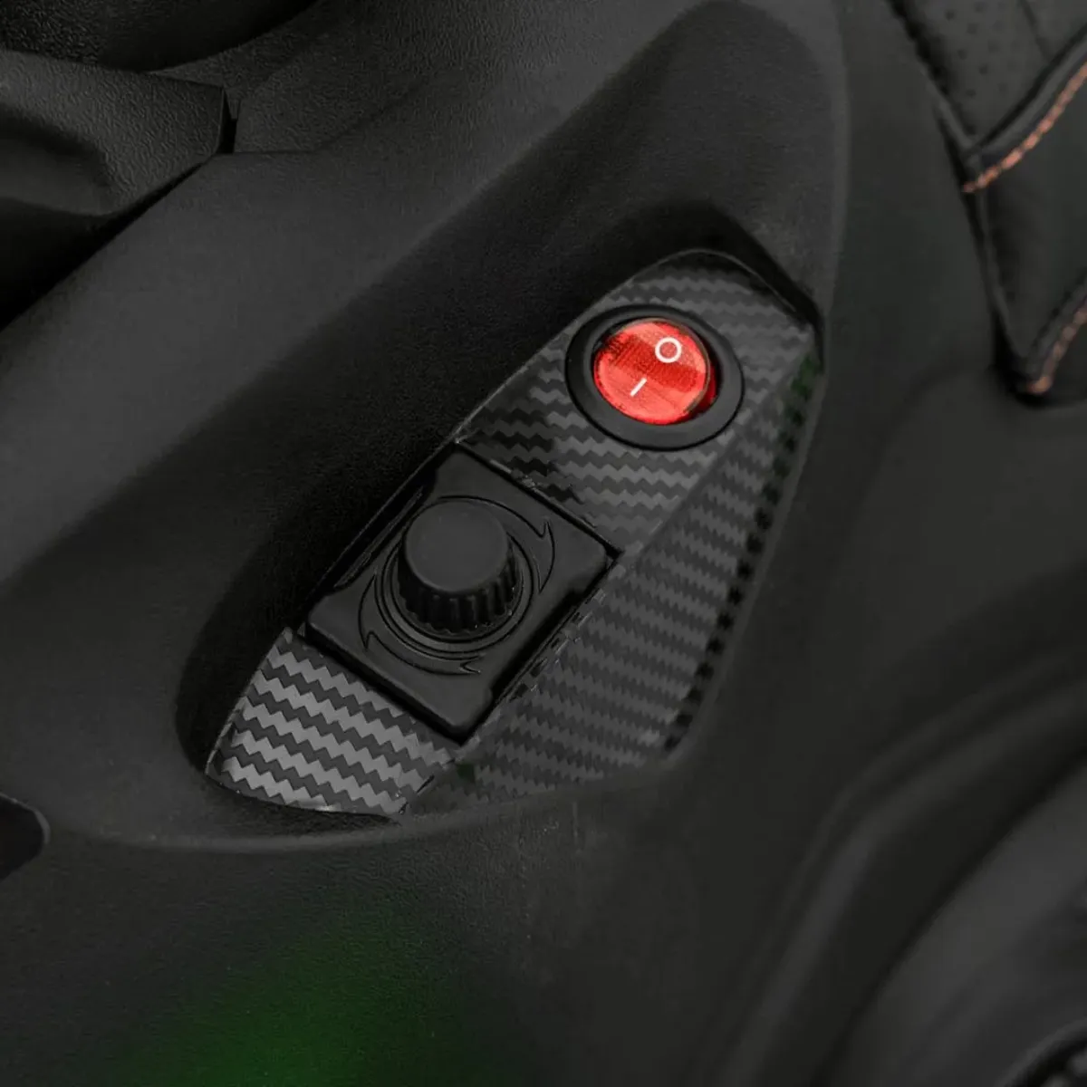 Deska rozdzielcza jest podświetlana LED-ami, co ułatwia odczyt wskaźnika naładowania baterii o zmierzchu. Panel sterowania zawiera włącznik główny z efektem dźwiękowym uruchamiania silnika, pedał gazu na prawej stopie i panel audio pomiędzy kierownicą a siedzeniem. Światła LED z przodu i z tyłu zwiększają widoczność pojazdu w słabszym świetle i dodają realizmu.