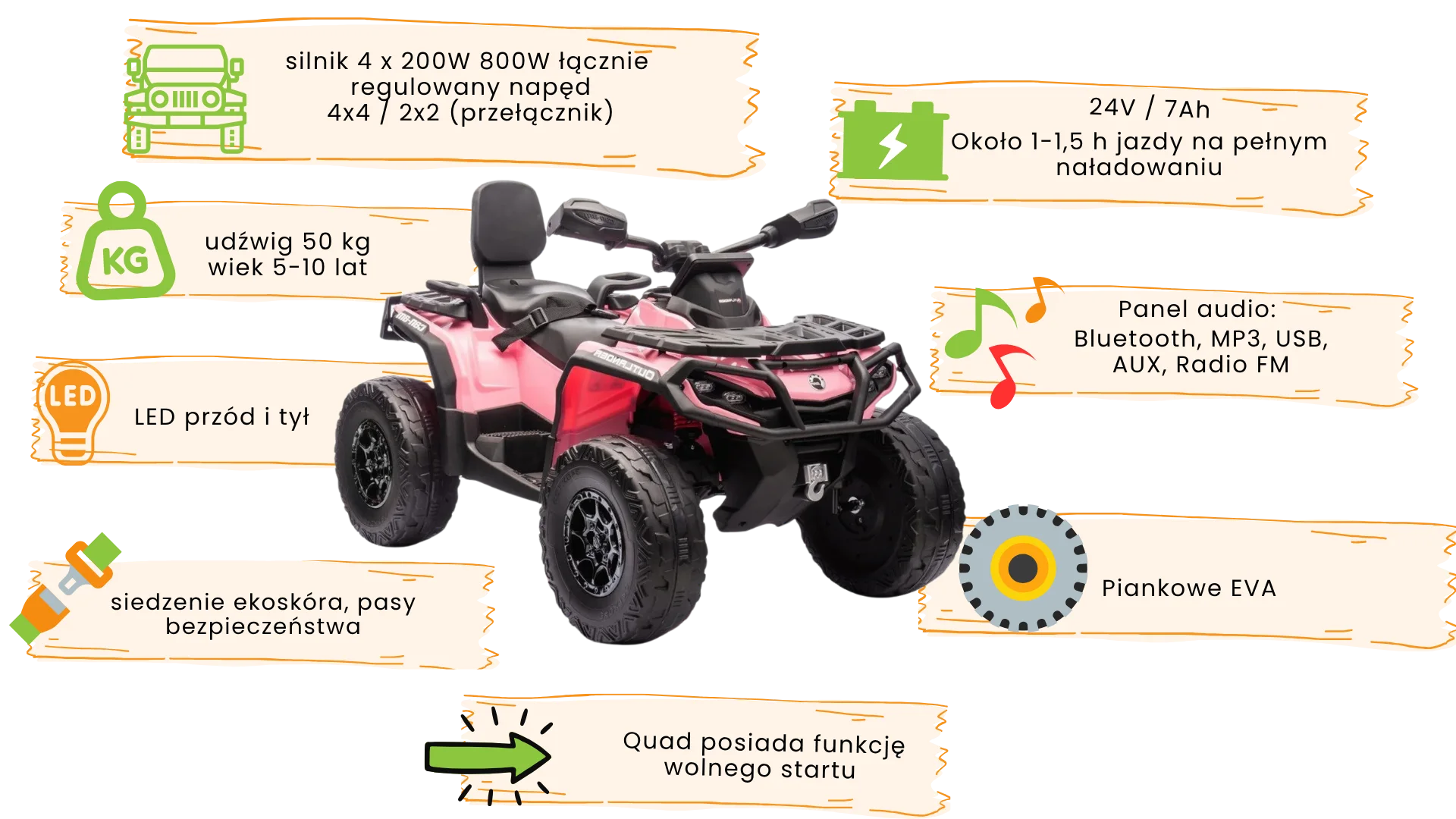 Quad Elektryczny Dla Dziewczynki - Can-Am Outlander 4x200W, 24V/7Ah ATV 4x4 - Kolor Różowy