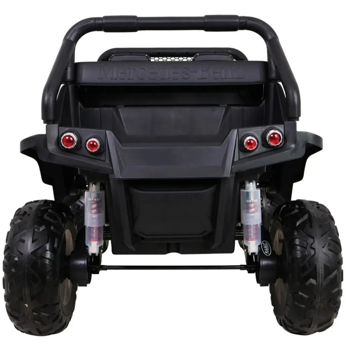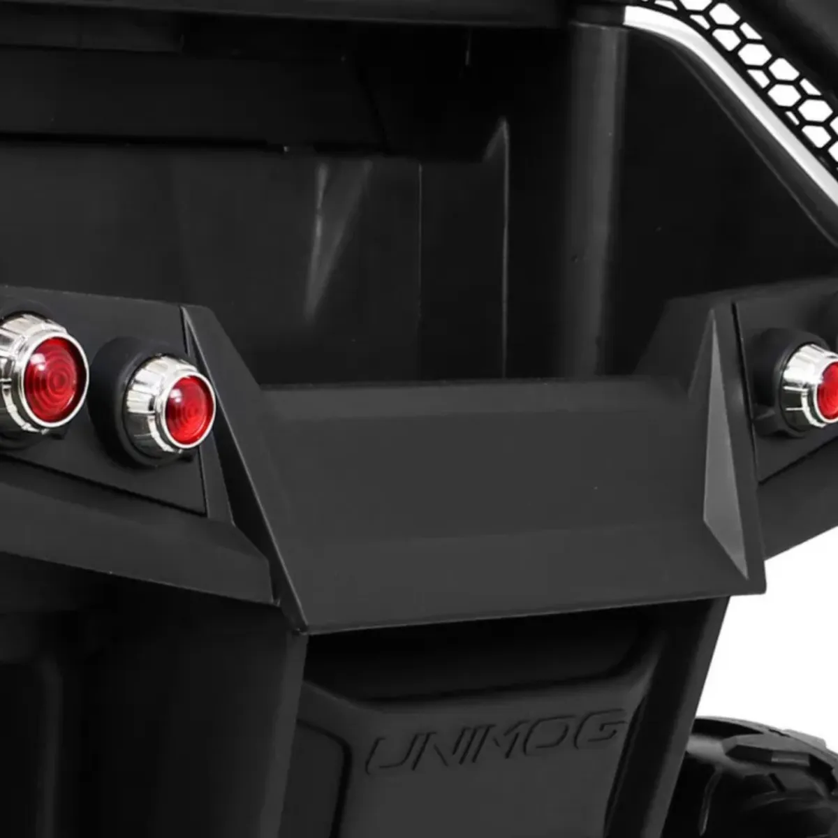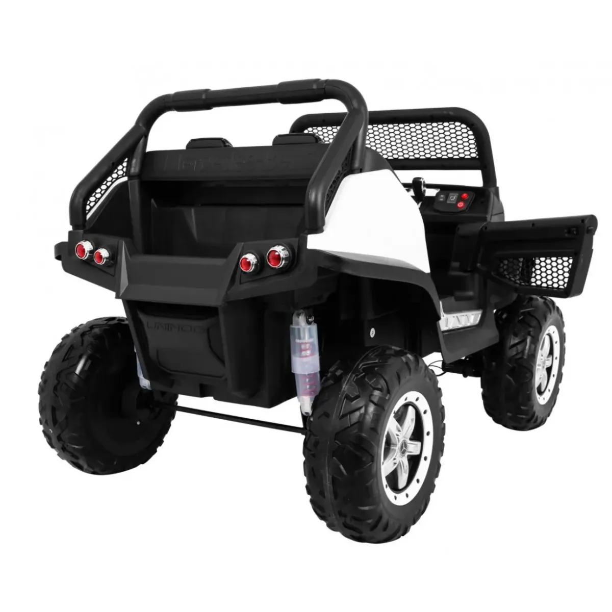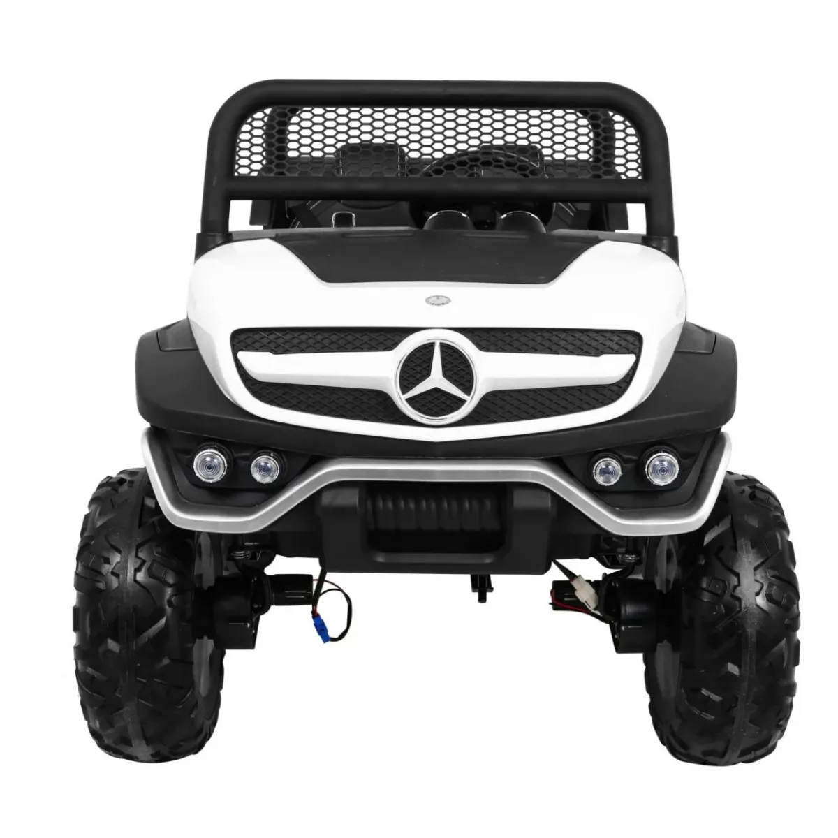 Samochód elektryczny dwuosobowy Mercedes UNIMOG in kolorze białym to idealny wybór dla rodzin ceniących elegancję, klasykę i luksusowy wygląd. Biały to kolor premium - pasuje do zadbanych ogrodów, eleganckich działek, rodzin dbających o estetykę otoczenia.