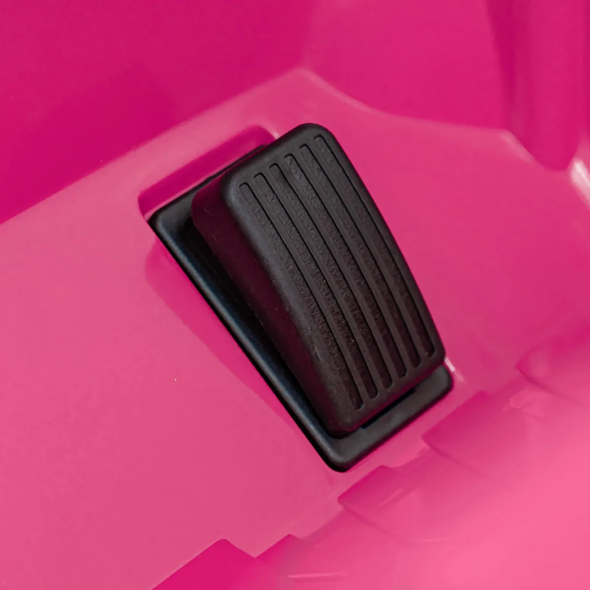 Światła LED przednie to nie tylko element dekoracyjny. Podczas jazdy wieczorną porą (w bezpiecznym, zamkniętym terenie jak ogrodzone podwórko czy działka) białe reflektory LED zwiększają widoczność pojazdu dla dorosłych i innych dzieci. Różowa karoseria z włączonymi światłami wygląda bajkowo - jak pojazd z ulubionej bajki. To dodatkowa warstwa bezpieczeństwa dla rodziców pozwalających córce jeździć po kolacji latem.